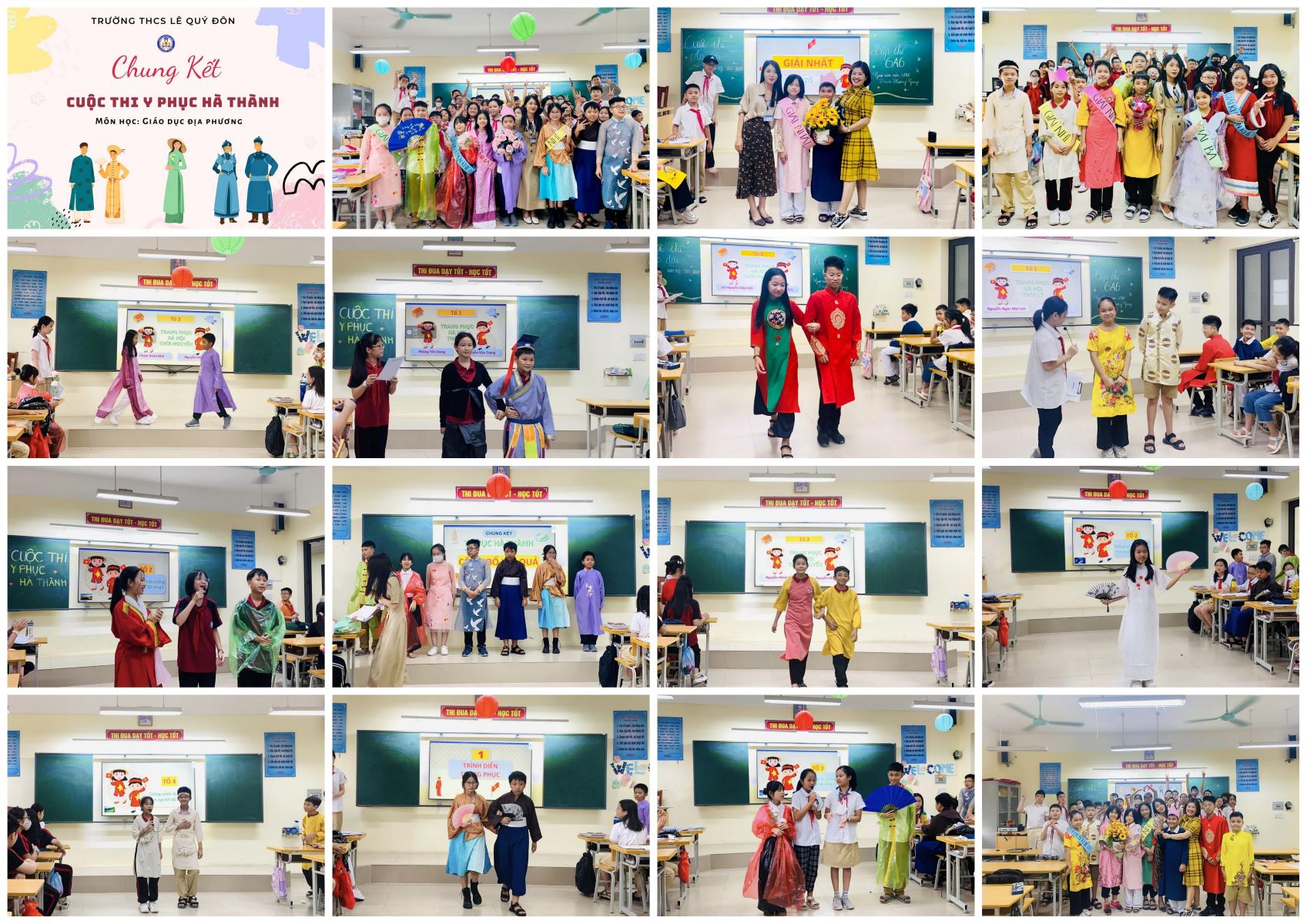 - Nhận thức được ý nghĩa của việc giữ gìn truyền thống văn hoá quê hương qua văn hoá ăn mặc, được sự chỉ đạo, hướng dẫn của giáo viên giảng dạy môn Giáo dục địa phương - Trịnh Hương Giang, các con học sinh khối 6 đã tổ chức thành công cuộc thi “Y phục Hà Thành” nhằm tôn vinh nét đẹp trang phục của người Hà Nội. Trong cuộc thi, các con được thử sức với nhiều vai trò: nhà thiết kế thời trang tài ba mô phỏng lại trang phục của người Hà Nội qua các thời kì hay người mẫu, nghệ sĩ thực thụ trình diễn tài năng cho đến MC khéo léo lèo lái chương trình và bạn kĩ thuật viên chuyên nghiệp đứng sau thành công của buổi biểu diễn,....