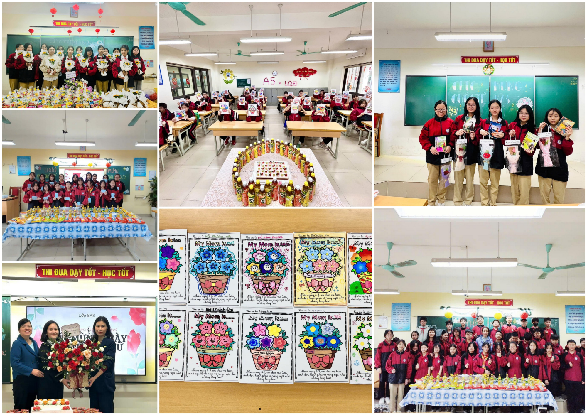 Tại mỗi lớp, học sinh đã cùng nhau chuẩn bị những tiết mục đặc sắc để tri ân cô giáo và các bạn nữ trong lớp. Những lời chúc ấm áp, những bài hát, vở kịch vui nhộn và những tấm thiệp tự tay làm