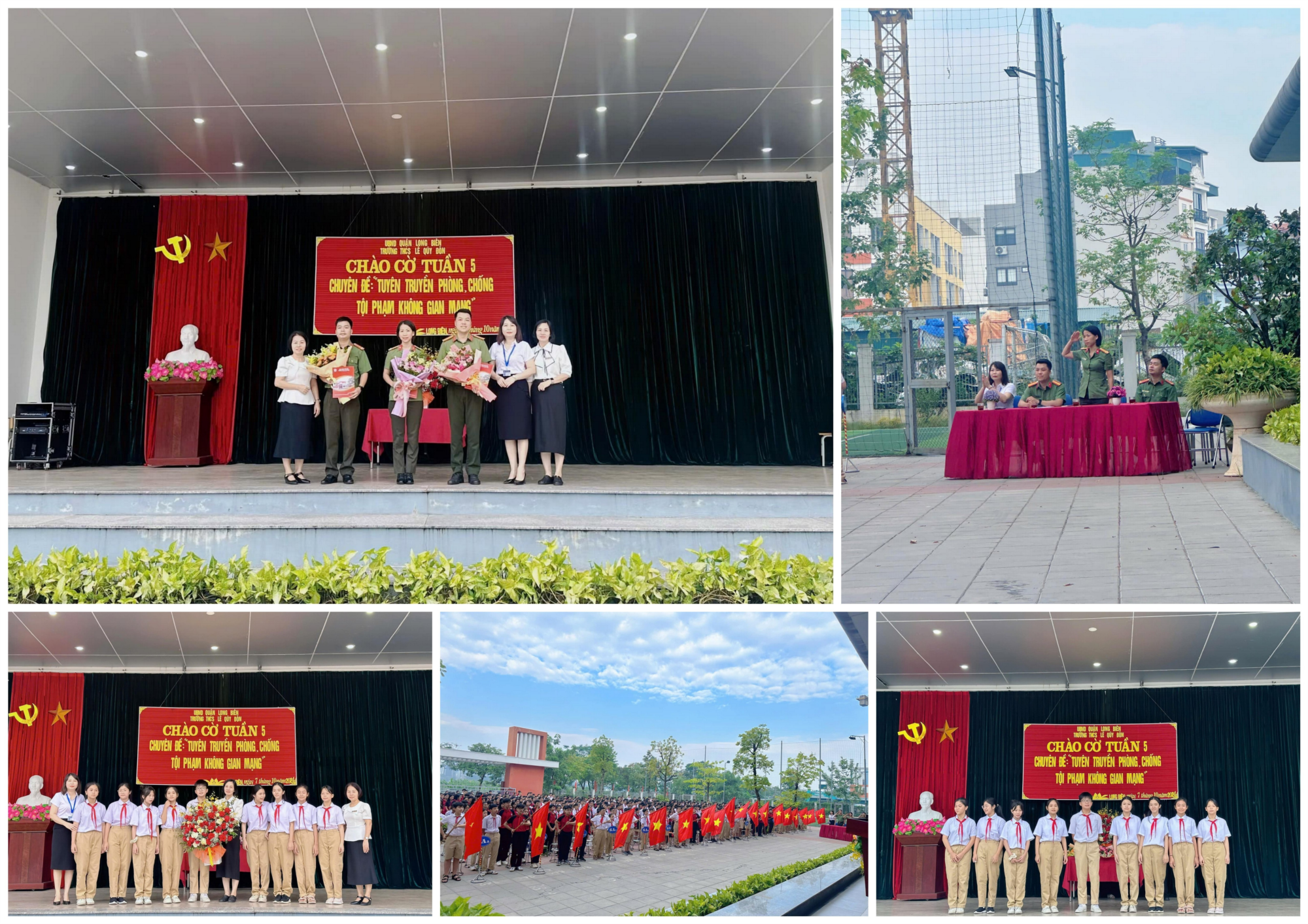 Chào cờ đầu tuần 5 tại trường THCS Lê Quý Đôn đã diễn ra với chuyên đề ý nghĩa: "Tuyên truyền phòng chống tội phạm trên không gian mạng" với sự tham gia của các cán bộ Công an: