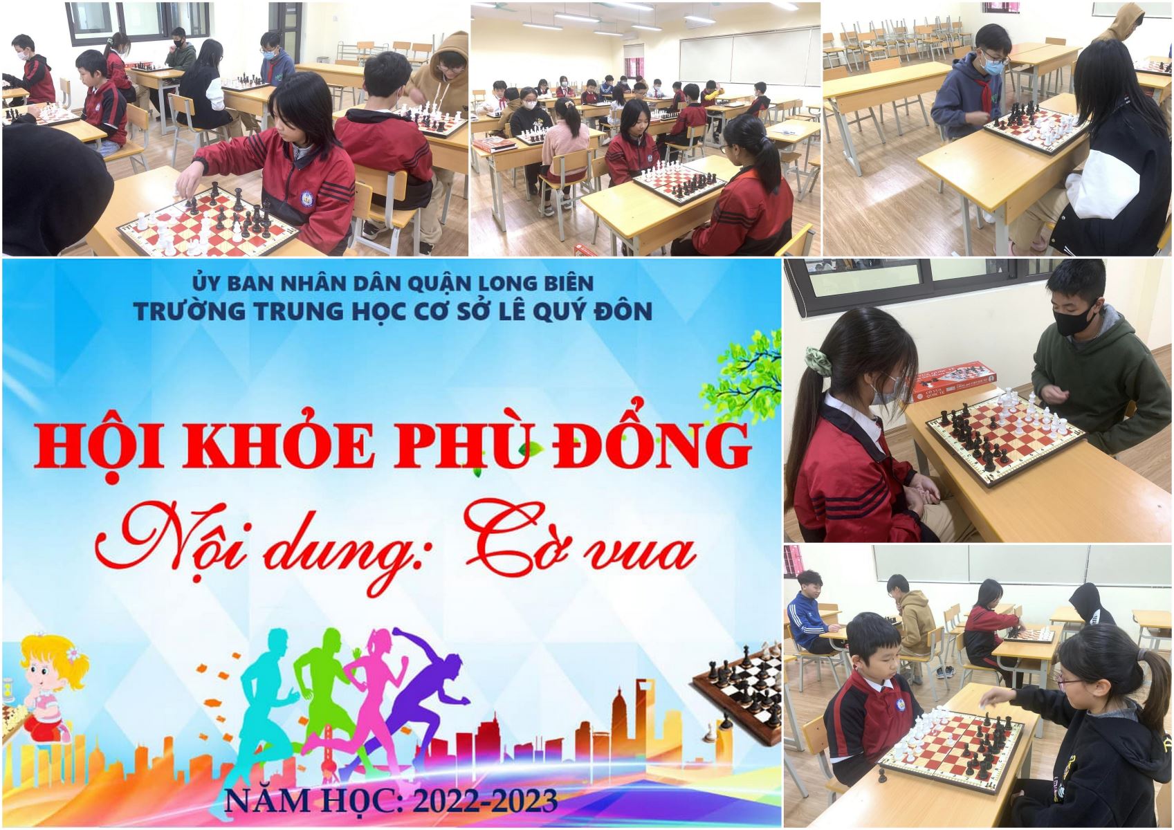 Chiều thứ tư (4/1), Trường THCS Lê Quý Đôn tổ chức thi đấu nội dung cờ vua trong chuỗi hoạt động của Hội khoẻ Phù Đổng năm 2022 - 2023.