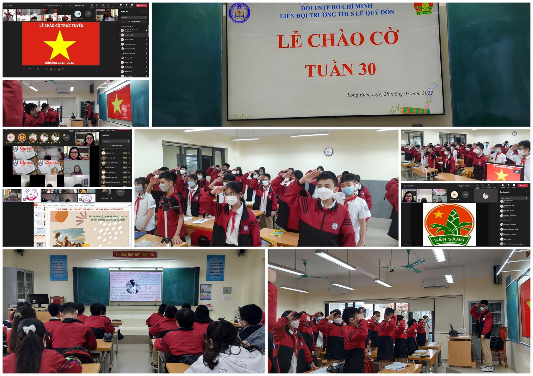 Tuần này, thầy và trò trường THCS Lê Quý Đôn đã có tiết chào cờ - sinh hoạt lớp trực tiếp (đối với khối 7,8,9) và trực tuyến (đối với khối 6) vào sáng thứ 2 (28/3/2022).