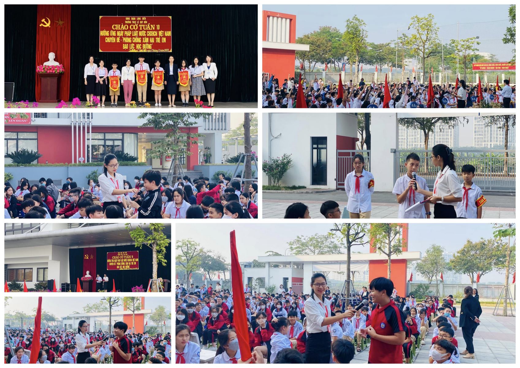 - Cũng trong giờ chào cờ, Trường THCS Lê Quý Đôn đã tổ chức chương trình "Hưởng ứng Ngày pháp luật nước CHXHCN Việt Nam” và chuyên đề “Phòng, chống xâm hại trẻ em, bạo lực học đường".