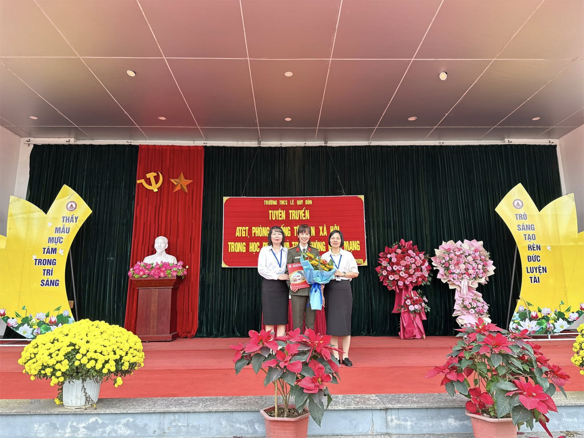 Trong buổi chào cờ tuần 24, Trường THCS Lê Quý Đôn đã tổ chức buổi tuyên truyền chuyên đề về An toàn giao thông và phòng, chống tệ nạn xã hội trong học đường và trên không gian mạng nhằm nâng cao nhận thức, ý thức chấp hành pháp luật cho học sinh toàn trường.