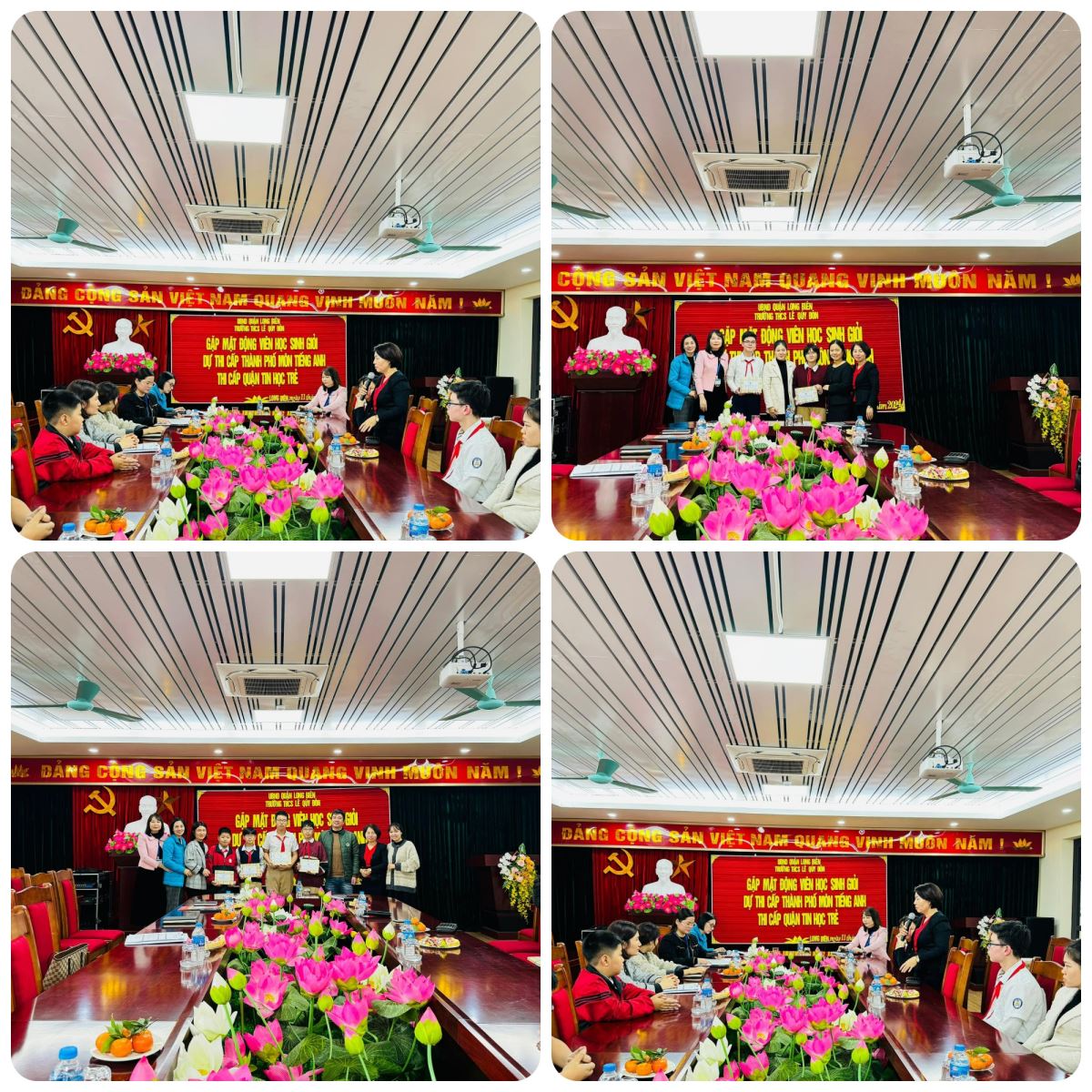 Sáng Thứ Năm (11/01/2024), trường THCS Lê Quý Đôn đã tổ chức buổi gặp mặt động viên học sinh giỏi dự thi cấp Thành phố môn Tiếng Anh và thi cấp Quận Tin học trẻ.