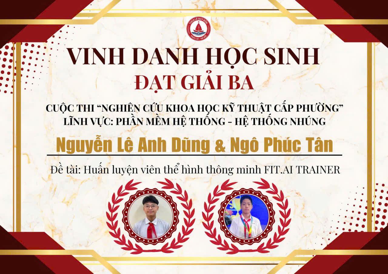Xin chúc mừng nhóm học sinh tài năng của trường THCS Lê Quý Đôn đạt giải Ba Cuộc thi nghiên cứu Khoa học Kỹ thuật cấp Phường.