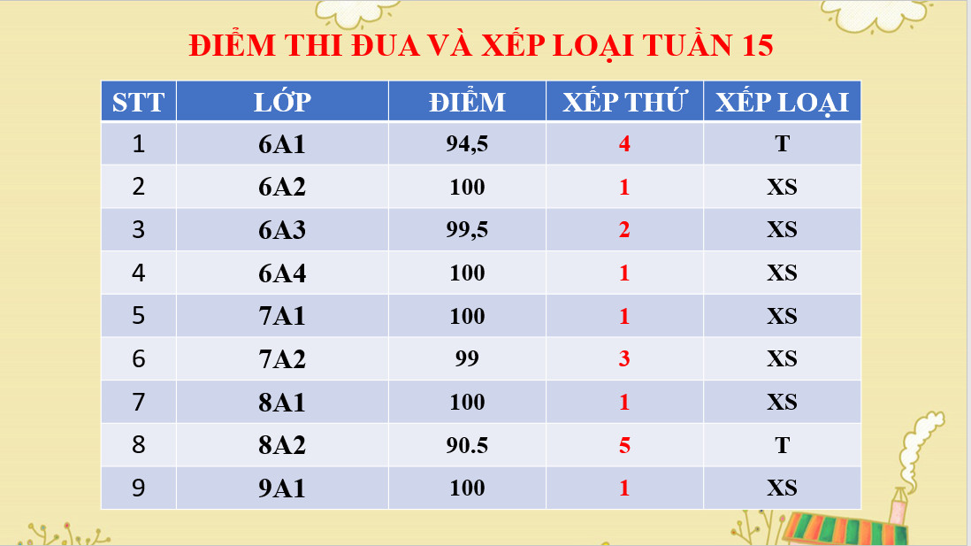 * Điểm thi đua và xếp loại tuần 15 năm học 2021-2022