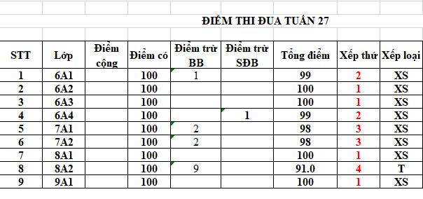 * Điểm thi đua và xếp loại tuần 27 năm học 2021-2022