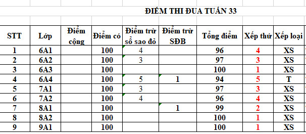 * Điểm thi đua và xếp loại tuần 33 năm học 2021-2022