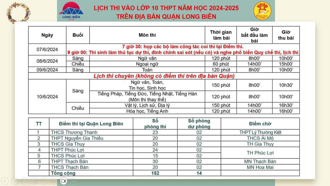 * Lịch thi vào lớp 10 năm học 2024-2025