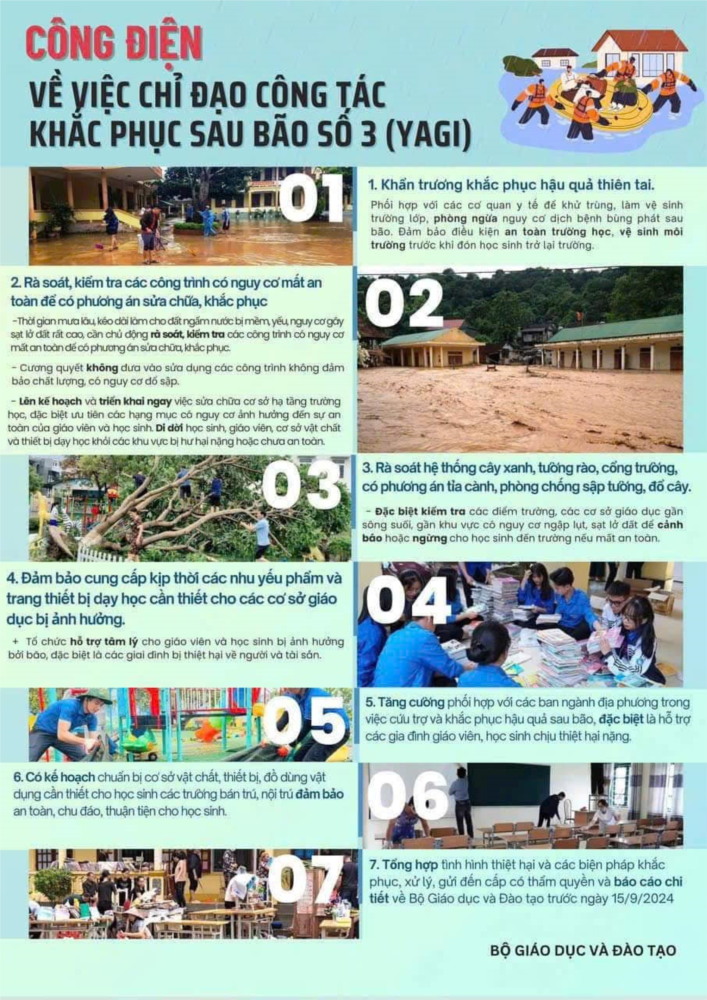 * CÔNG ĐIỆN CỦA BỘ TRƯỞNG BỘ GDĐT VỀ CHỈ ĐẠO KHẮC PHỤC SAU BÃO SỐ 3