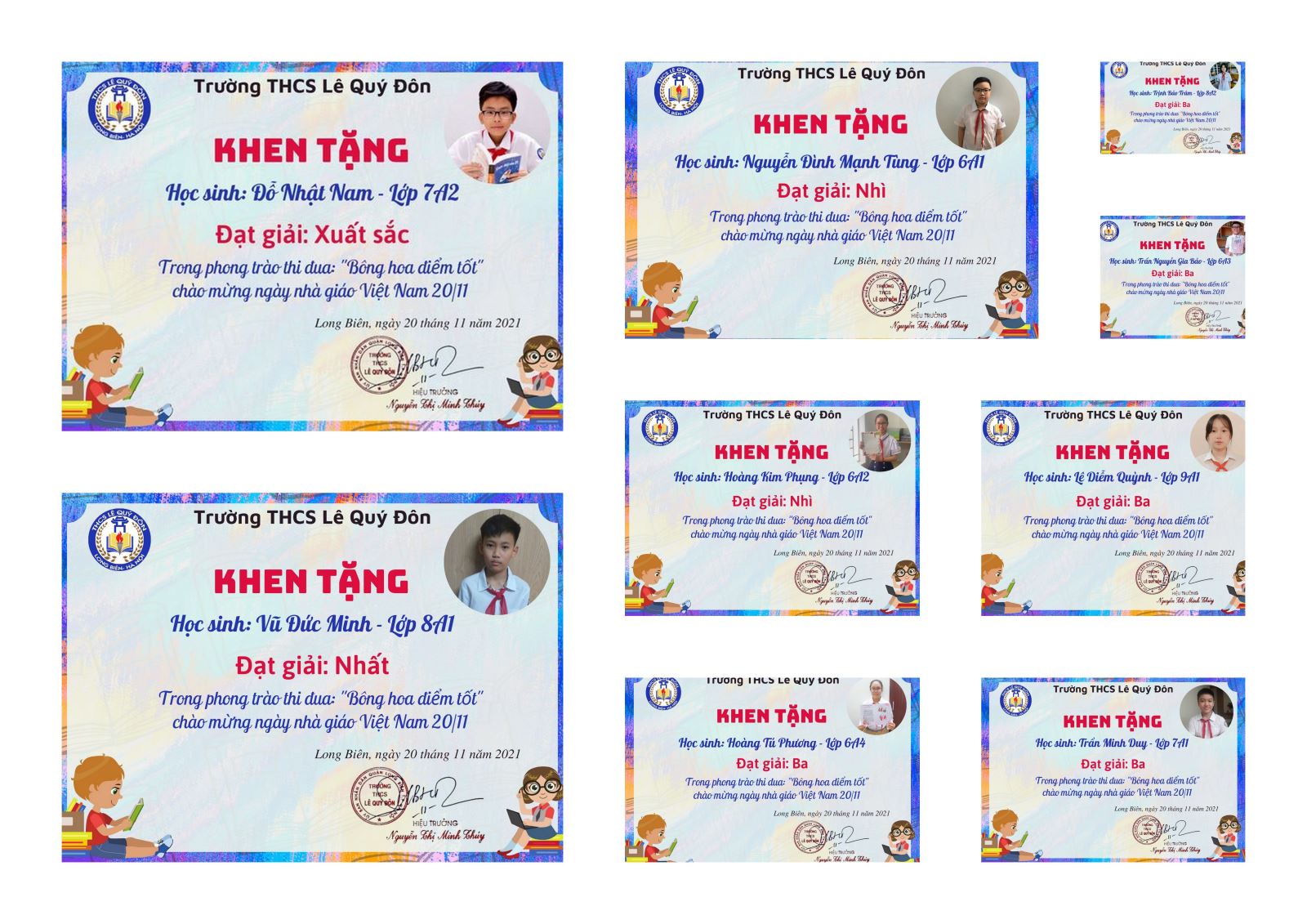 Đối với phần thi đua cá nhân, các em học sinh cũng hết sức nỗ lực và xin chúc mừng 9 em học sinh xuất sắc dành được thứ hạng cao nhất trong phong trào thi đua: "Bông hoa điểm tốt" của toàn trường.