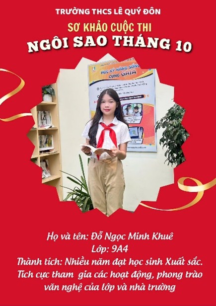 Tôi tin rằng với bản lĩnh, nghị lực và sự tử tế vốn có, Minh Khuê sẽ còn tiến xa hơn nữa trong hành trình học tập và trưởng thành. Mong rằng bạn sẽ luôn giữ vững phong độ, tiếp tục là “ngôi sao sáng” của lớp 9A4, và là tấm gương để chúng tôi noi theo.
