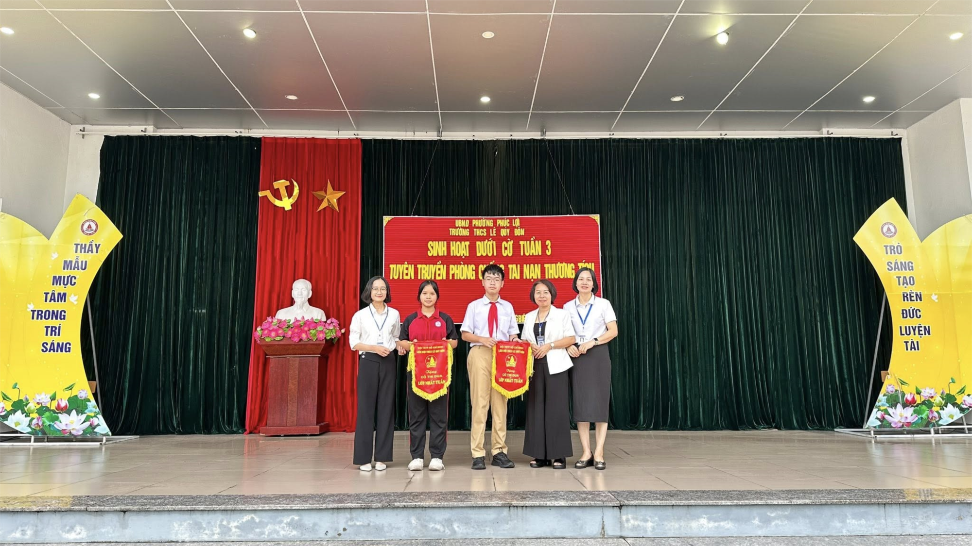 Sáng thứ Hai, trong không khí trang nghiêm của buổi Chào cờ tuần 3, thầy và trò Trường THCS Lê Quý Đôn đã cùng nhau tham dự hoạt động ý nghĩa do tập thể lớp 9A4 thực hiện với chủ đề “Phòng chống tai nạn thương tích”.