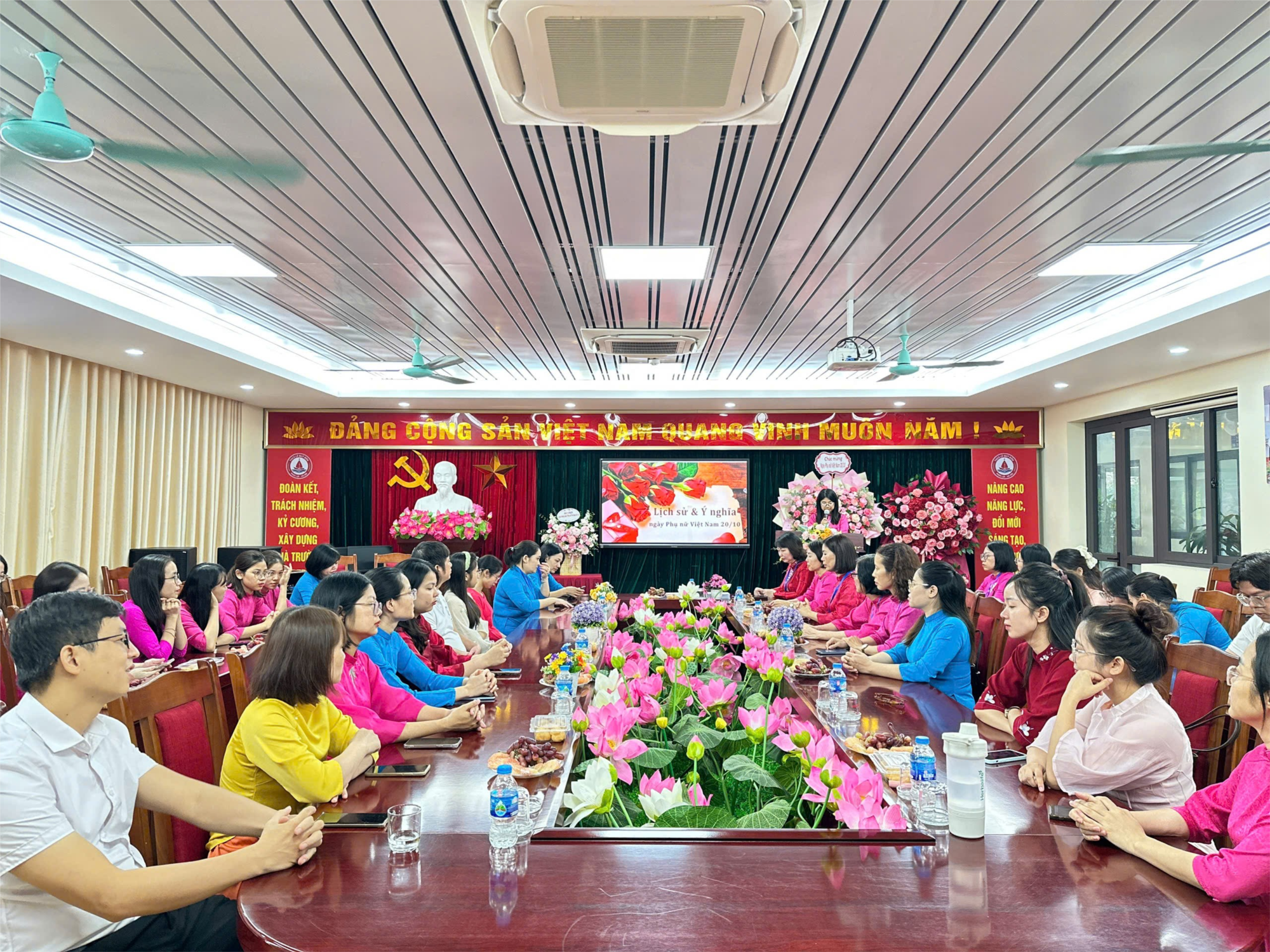 Trong không khí tháng 10 dịu dàng, sáng ngày 20/10/2025, Trường THCS Lê Quý Đôn đã thân mật tổ chức buổi lễ kỷ niệm Ngày Phụ nữ Việt Nam – một ngày đặc biệt để tôn vinh những người phụ nữ Việt Nam là cán bộ, giáo viên, nhân viên hiện đang công tác tại nhà trường.