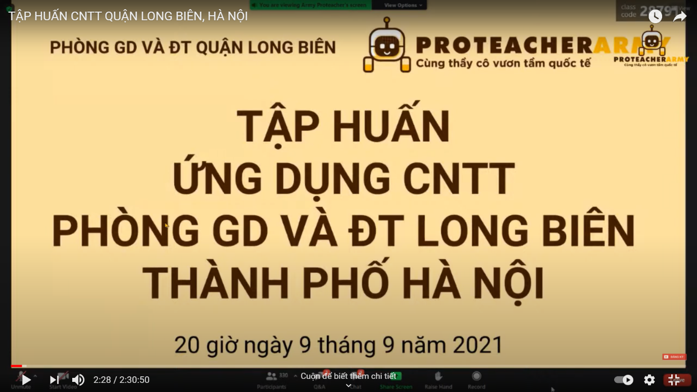 Buổi tập huấn được thực hiện bởi PROTEACHERARMY, do thầy Bùi Duy Phương trực tiếp hướng dẫn. Trong thời lượng của buổi học ngày 9/9/2021, thầy Duy Phương đã giới thiệu và hướng dẫn các thầy, cô giáo cách sử dụng trang web