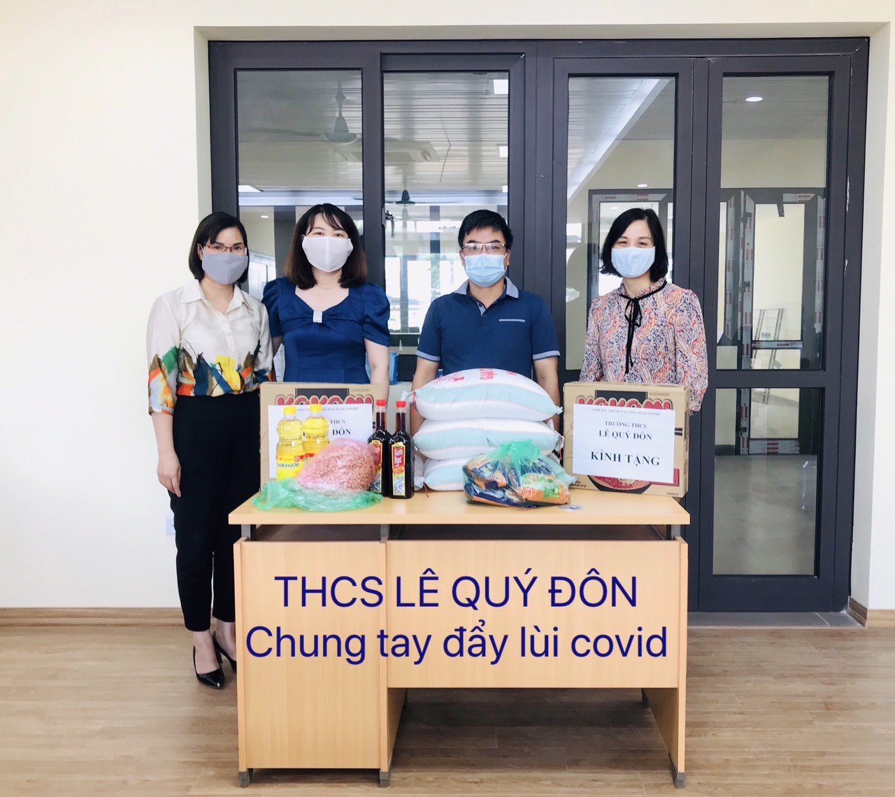 Sáng ngày 20 tháng 8 năm 2021, đồng chí Hiệu trưởng Nguyễn Thị Minh Thuý, đồng chí Phó hiệu trưởng Khúc Thị Thanh Hiền đại diện CBGVNV trường THCS Lê Quý Đôn đã trao những phần quà, nhu yếu phẩm gửi tặng cho đại diện người lao động trong công trường xây dựng nhà trường với lời chia sẻ: Cuộc chiến chống dịch Covid-19 được xem như chống giặc, không ai đứng ngoài cuộc chiến này. Nếu như thiếu các giải pháp đồng bộ, thiếu đi ý thức, trách nhiệm của mỗi cá nhân thì khó có thể chiến thắng. Vì vậy, để nhanh chóng đẩy lùi dịch, đem lại cuộc sống bình yên, thì mỗi cán bộ giáo viên và người lao động cần thực hiện nghiêm sự chỉ đạo của cấp ủy, chính quyền địa phương về phòng, chống dịch Covid-19. Cùng chia sẻ yêu thương, cùng đồng lòng, chung sức vì quê hương giữa lúc khó khăn chắc chắn dịch bệnh sẽ được đẩy lùi.